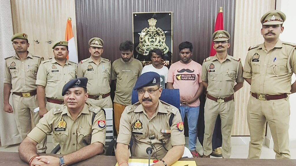 थाना गलशहीद पुलिस व सर्विलांस टीम द्वारा प्रभावी कार्यवाही करते हुये धोखाधडी व ठगी करने वाले 3 शातिर अन्तर्राज्य अभियुक्तगण को गिरफ्तार कर, उनके कब्जे से एक जोडी पीली धातु के कुण्डल व 35,600/- रू नकद, 2 कीपेड मोबाईल व घटना में प्रयुक्त एक वैगनार कार बरामद की गयी।