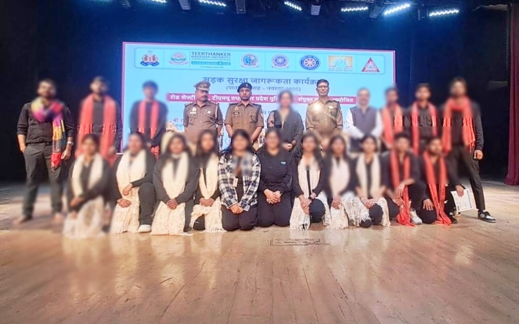 यातायात माह के अंतर्गत टी0एम0यू0 यूनिवर्सिटी में यूनिवर्सिटी के कुल 650 छात्र-छात्राओं, एनसीसी कैडेस एवं अध्यापकों के साथ श्री सुभाष चन्द्र गंगवार, पुलिस अधीक्षक, यातायात, राजेश कुमार, क्षेत्राधिकारी हाईवे, मिथलेश कुमार सिंह, प्रभारी निरीक्षक यातायात, योगेश कुमार मावी, थानाध्यक्ष पाकबडा, श्रीमती ऋतु नारंग, समाजसेविका द्वारा सड़क सुरक्षा नियमों के विषय में जागरूक कर सड़क सुरक्षा की शपथ दिलायी
